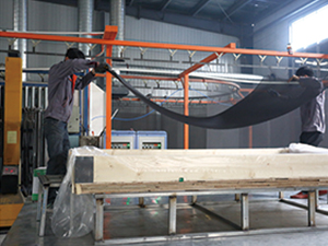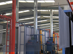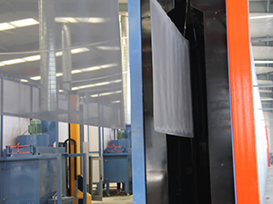 挂件——高压脱脂喷淋处理——高压喷淋镐化处理(增加表面附着力)——纯净水高压喷淋清洗——产品预烘干——产品红外线预加热——美国进口喷枪喷塑(阿克苏粉末涂料)——产品进入140米长200度恒温固化炉固化处理——摘件